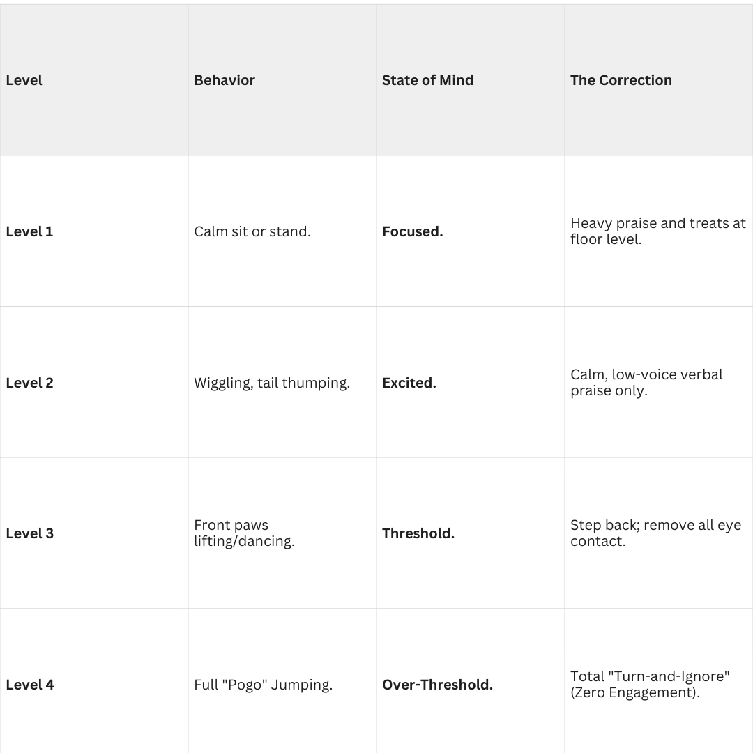 Not all jumps are created equal. Use this scale to identify where your dog's impulse control is breaking down.